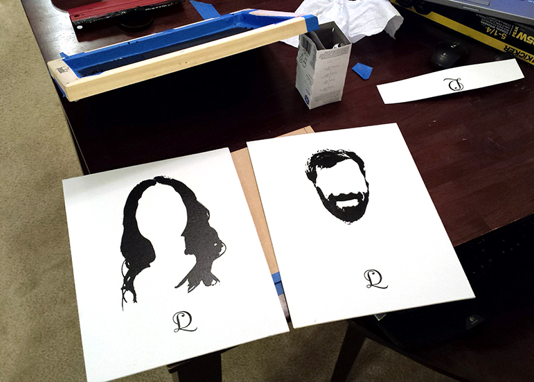 I’d been interested in screen printing for a while, and a friend’s upcoming wedding provided the perfect source of motivation and a deadline for a project. The concept and design are (as far as I konw) original, and it took quite a while to get that part down. The illustrations were done in Illustrator manually, which was a bit tedious, but provided better results than any automated method I tried.